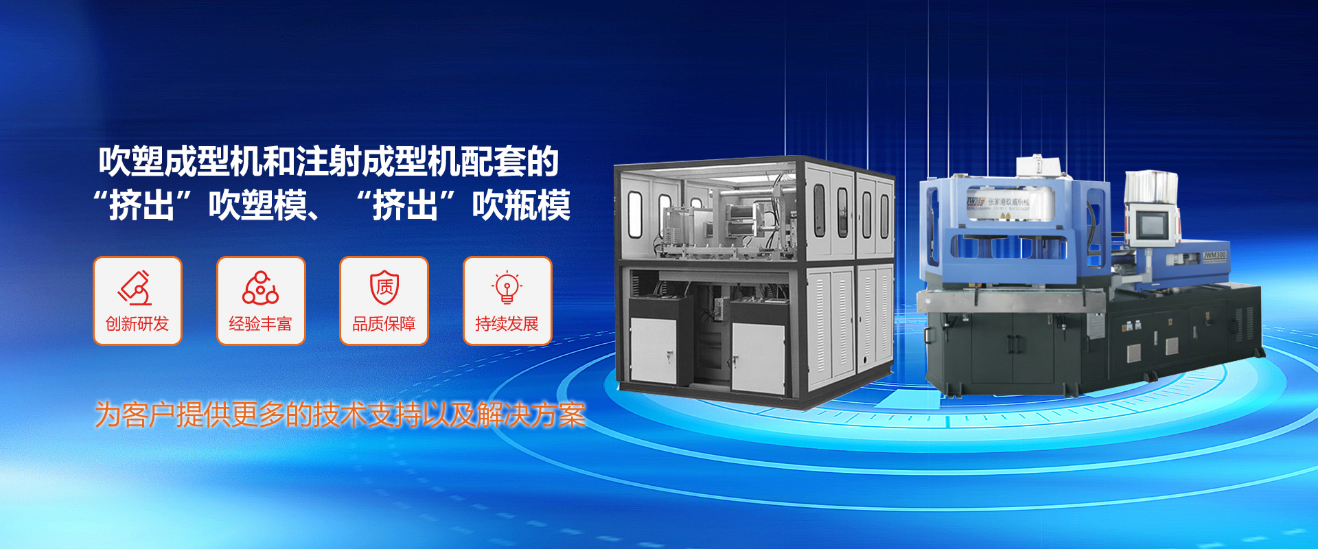 張家港玖威機(jī)械有限公司匯集了從事塑料加工機(jī)械及配套模具研發(fā)多年的工程技術(shù)人員,有豐富的理論和實(shí)踐經(jīng)驗(yàn),能為用戶的投資計劃提供詳盡周到的服務(wù)。